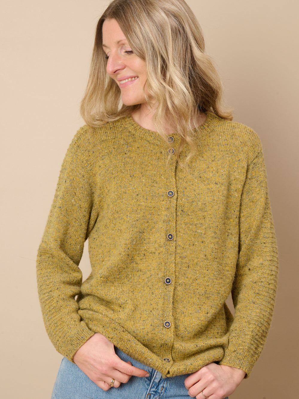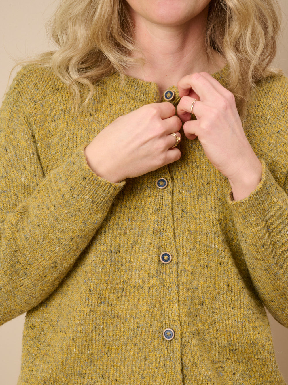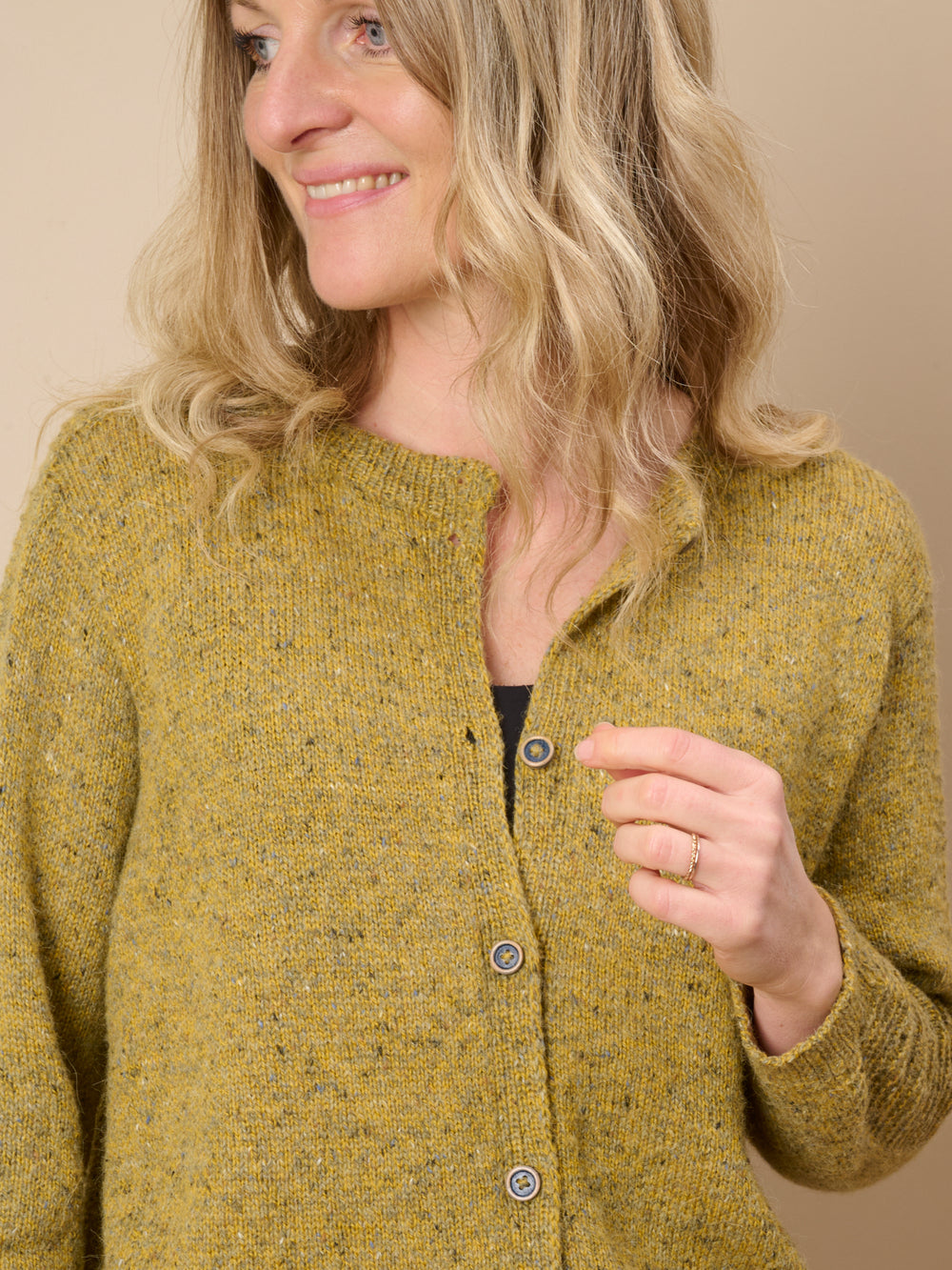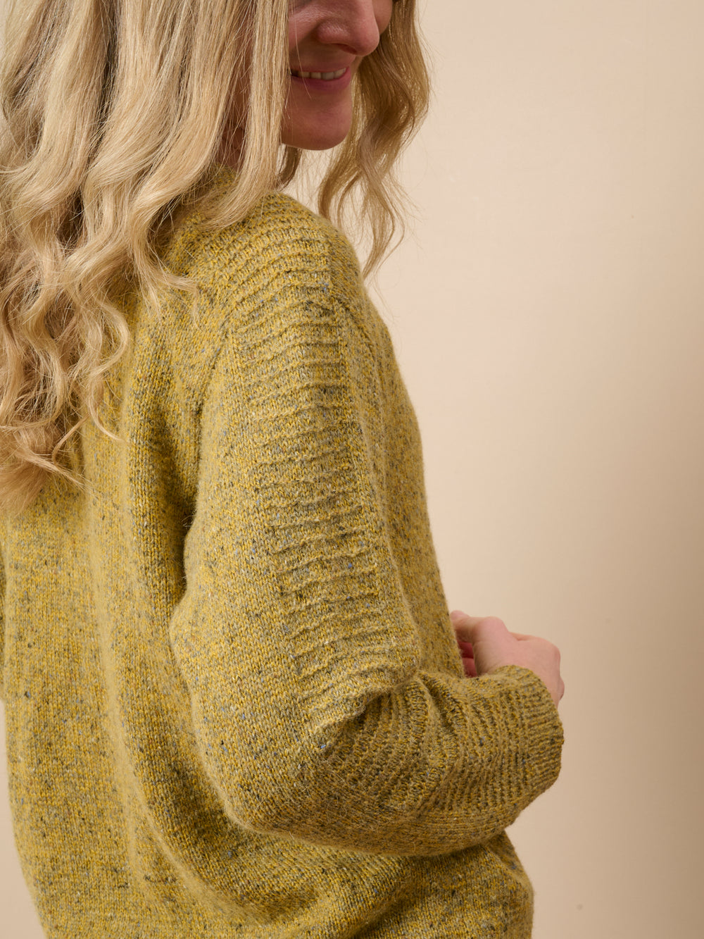 Christine Cardigan wird mit Mayflower Birmingham gestrickt, das hauptsächlich aus Alpaka und Wolle besteht. Außerdem ist hier das Garn die schönsten Tweedknoten, die dem Garn viel Persönlichkeit und Charme verleihen. Das großartige Farbspiel des Tweed passt perfekt zur einfachen Christine Cardigan, ohne die Aufmerksamkeit der großen Details der Strickjacke zu sich zu nehmen.