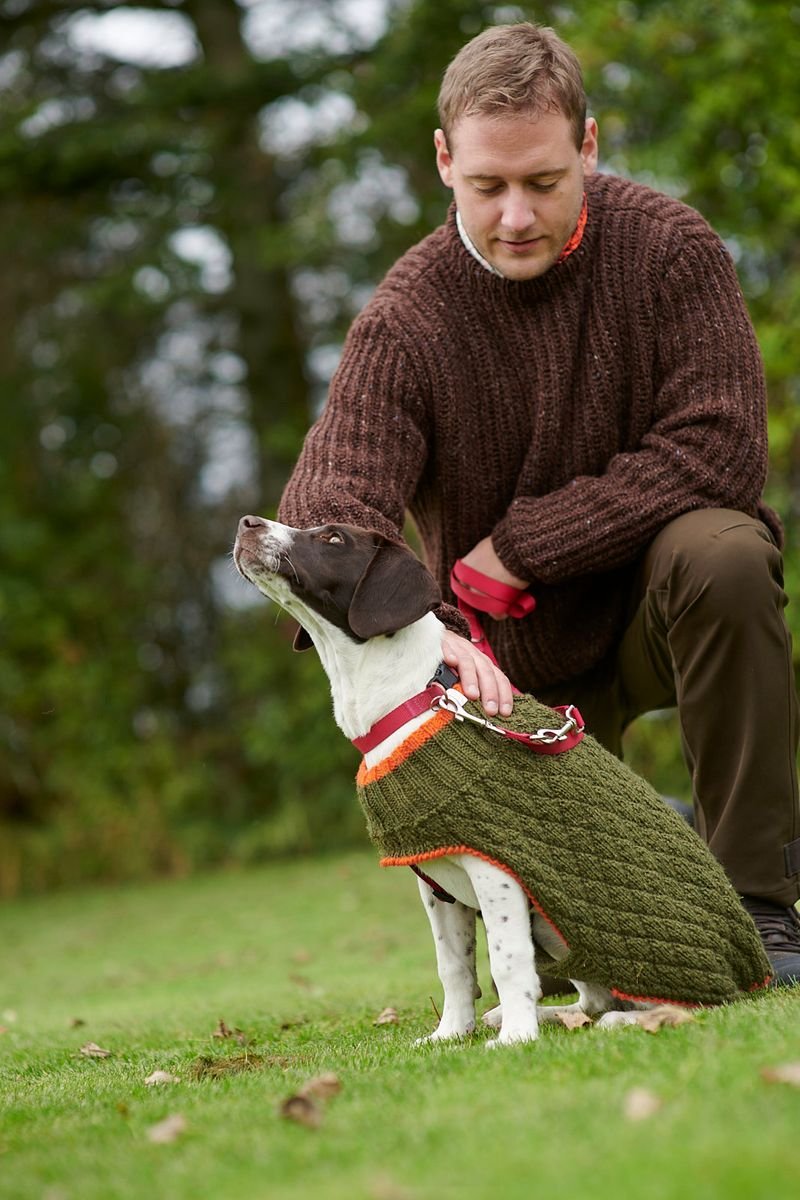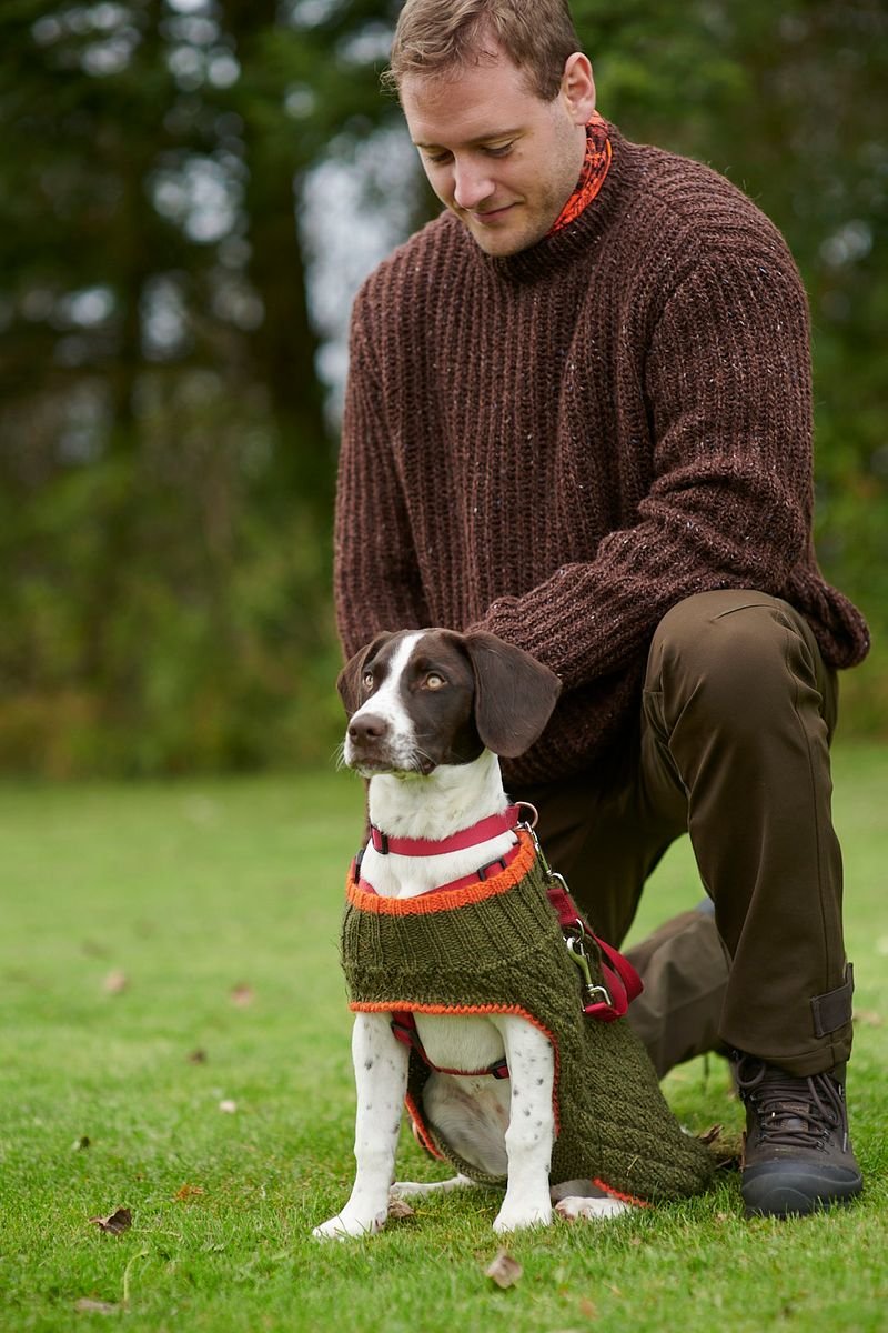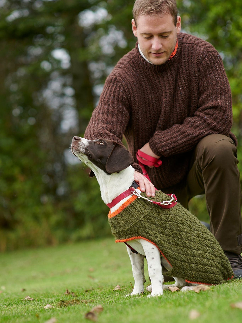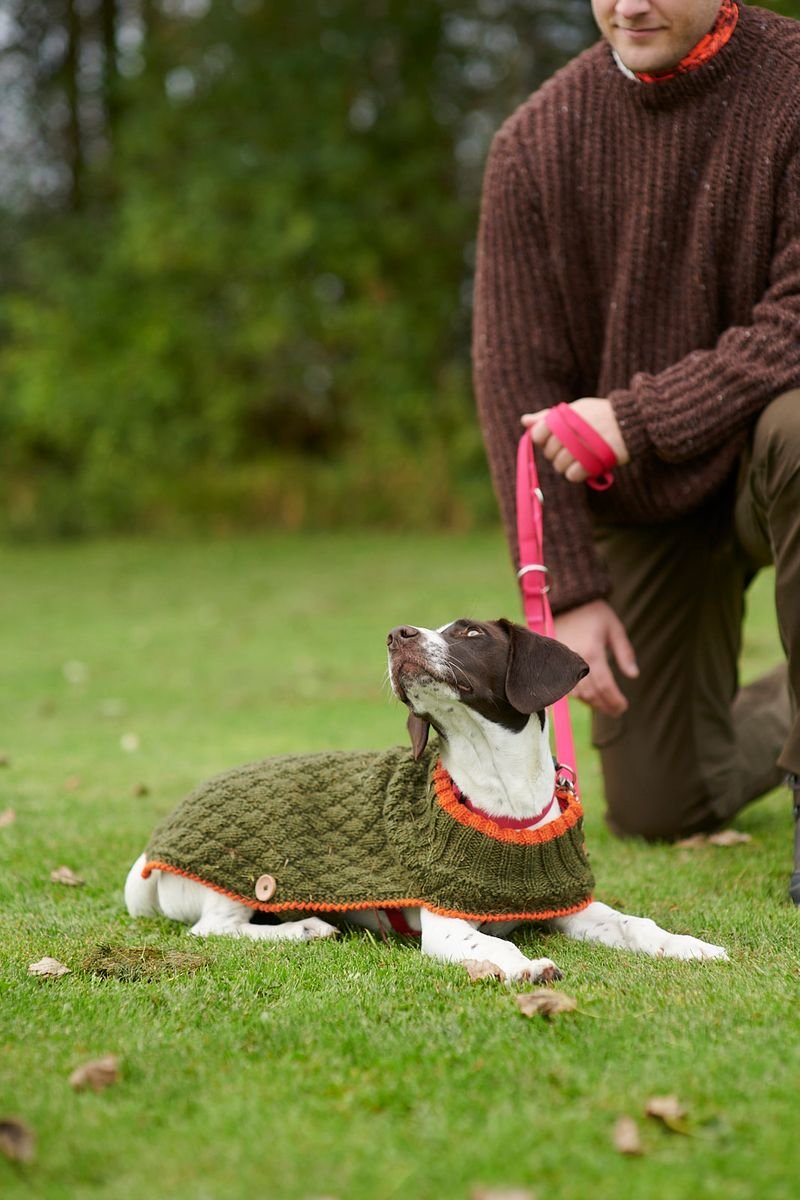 Das Decken kann allein oder als Futter unter einer winddichten Hundejacke getragen werden. Die Anleitung ist in drei Größen erhältlich.