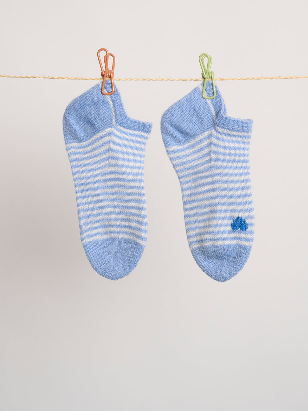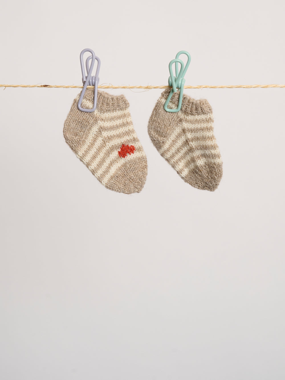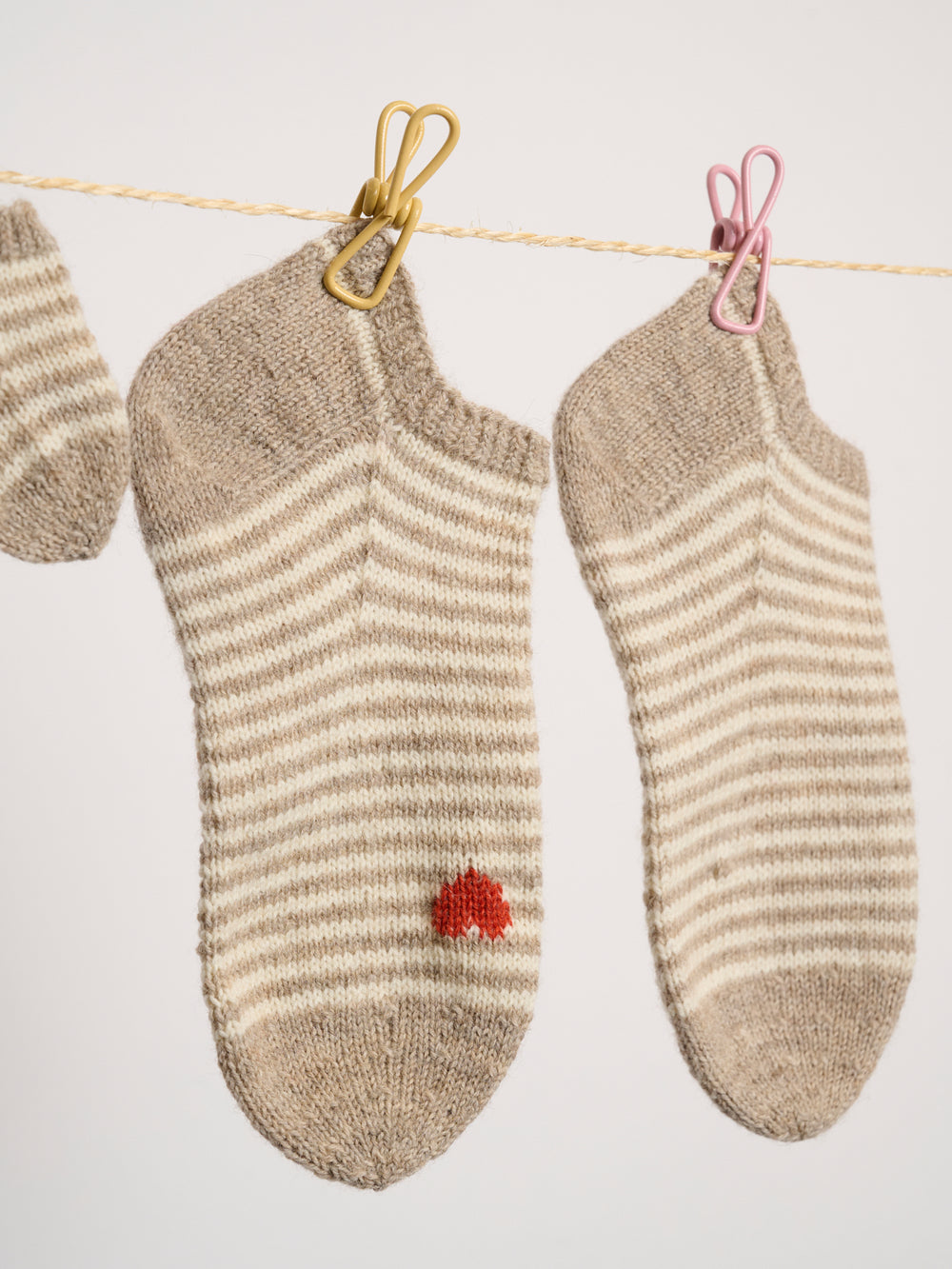 Wenn du die Ringelherz-Socken in Größe 41 strickst, empfehlen wir dir, ein zweites Knäuel in der Hauptfarbe zu kaufen, damit genügend Garn für die Baby-Socken übrig bleibt.