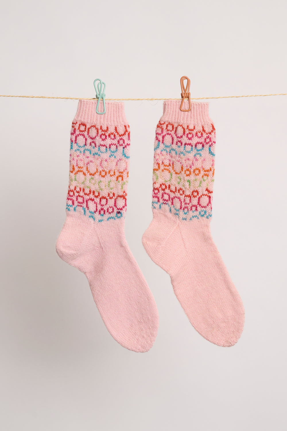 Diese verspielten Socken bringen mit ihrem lebendigen Maschenbild Seifenblasen auf deine Nadeln!