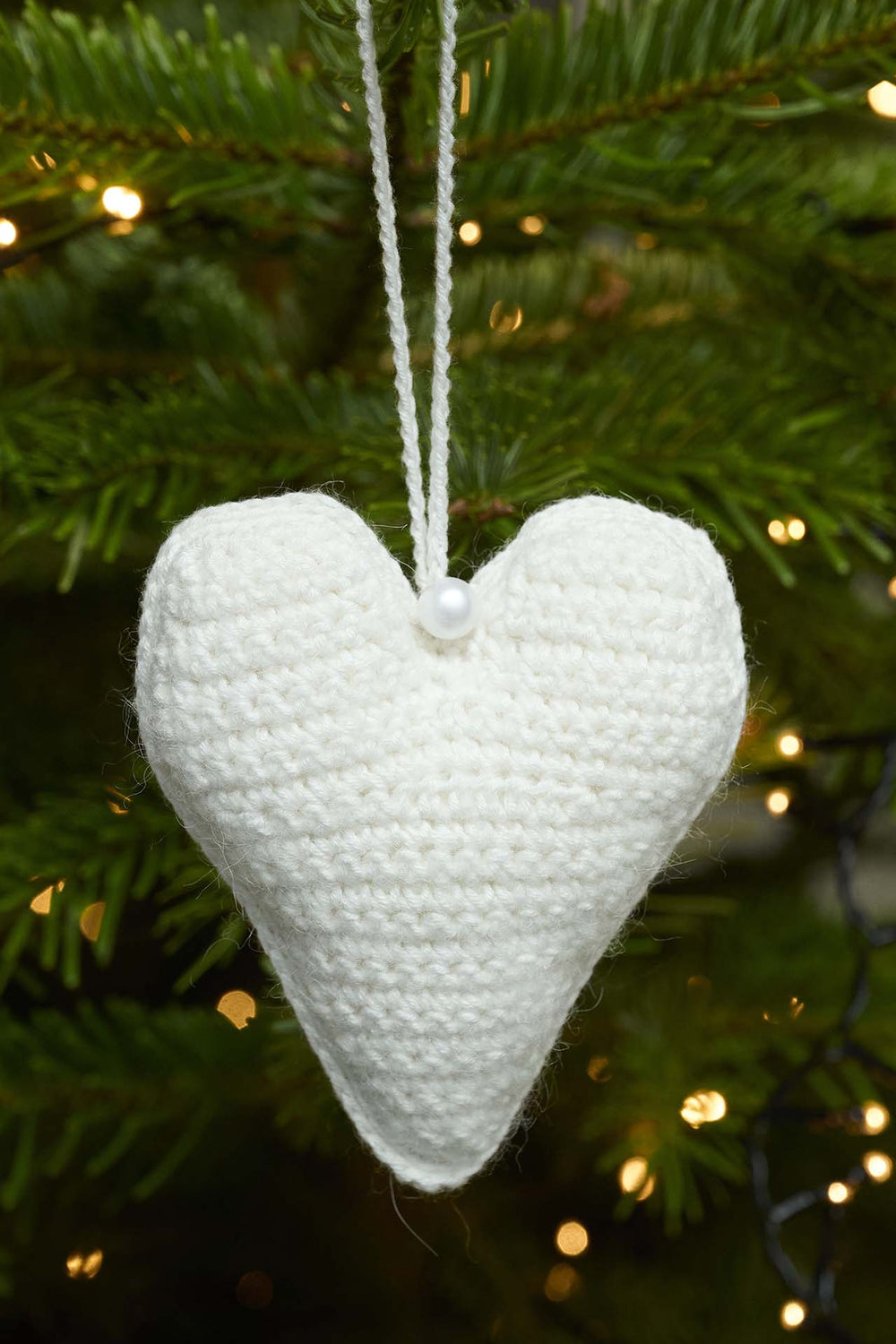 Weiche, gehäkelte Herzen, die wie kleine Schneeherzen aussehen, mit Aufhängung und Perle. Du kannst sie zum Beispiel ins Fenster oder an den Weihnachtsbaum hängen. Häkle sie mit Mayflower Alliance Fine und dem weichen Mayflower Elba, das ihnen ein flauschig-weiches Aussehen verleiht.