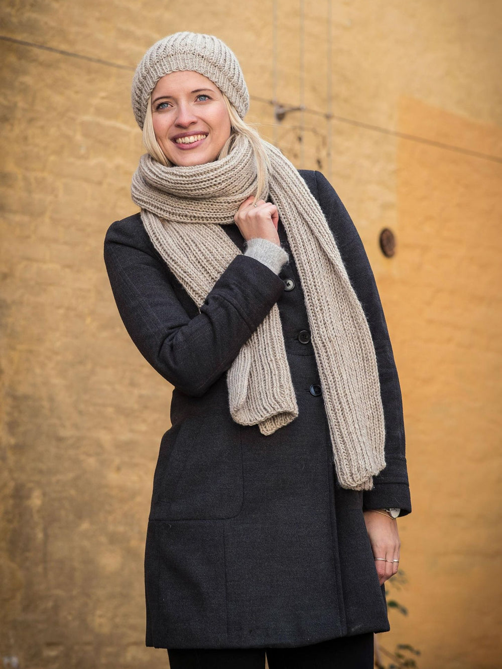 Beide Teile sind aus Mayflower Easy Care Big gestrickt, der dicksten Garnqualität der Easy Care-Serie. Daher wird mit Nadelstärke 5 mm gearbeitet. Die Garnqualität besteht zu 100 % aus reiner, neuer Wolle, die maschinenwaschbar und trocknergeeignet ist. Das Garn ist warm und atmungsaktiv, daher ideal für Mützen und Schals, die warm halten und gleichzeitig die Körperwärme entweichen lassen können.
