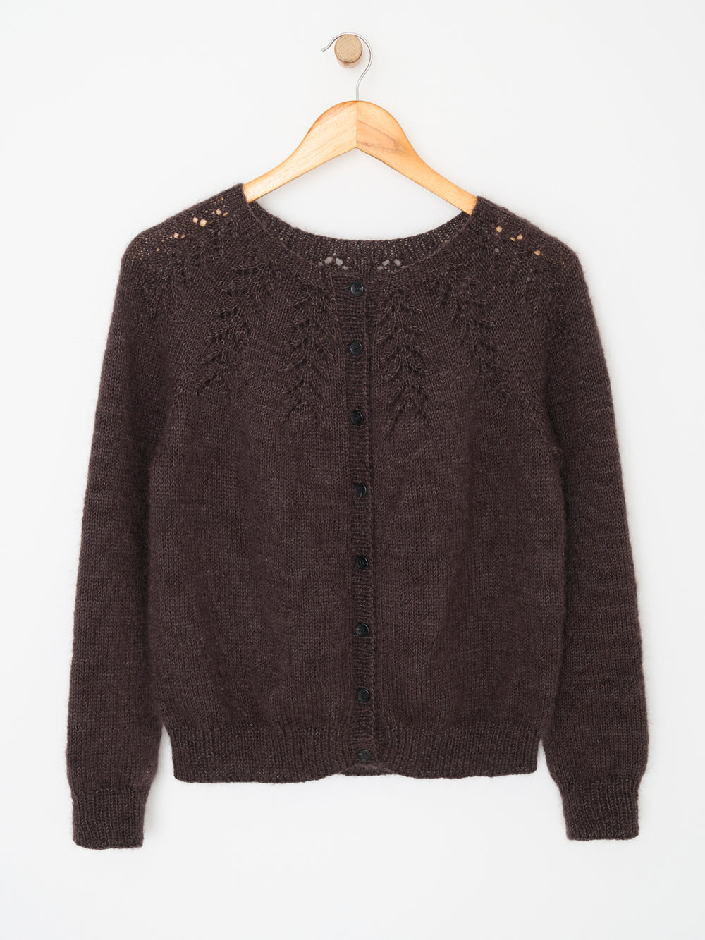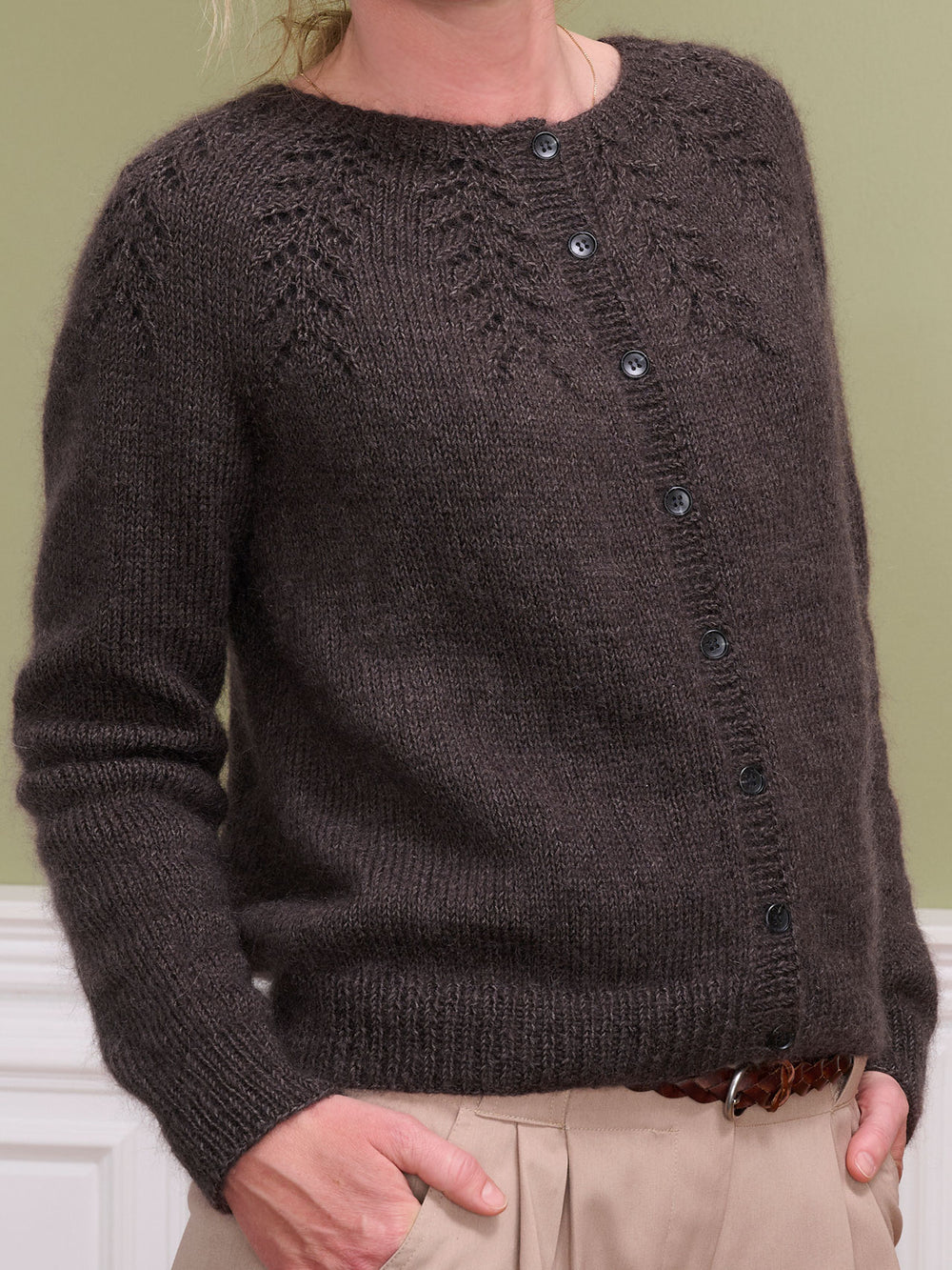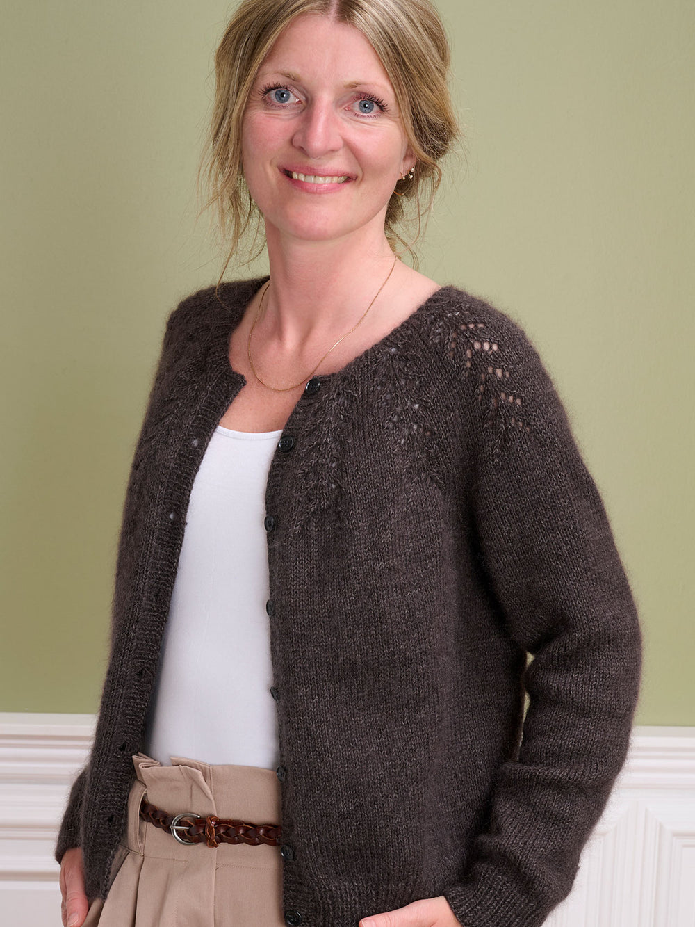 Der Cardigan wird von oben nach unten im bekannten IO-Look gestrickt. Ein kuscheliger, luxuriöser Cardigan aus Mayflower Amadora und Super Kid Silk.