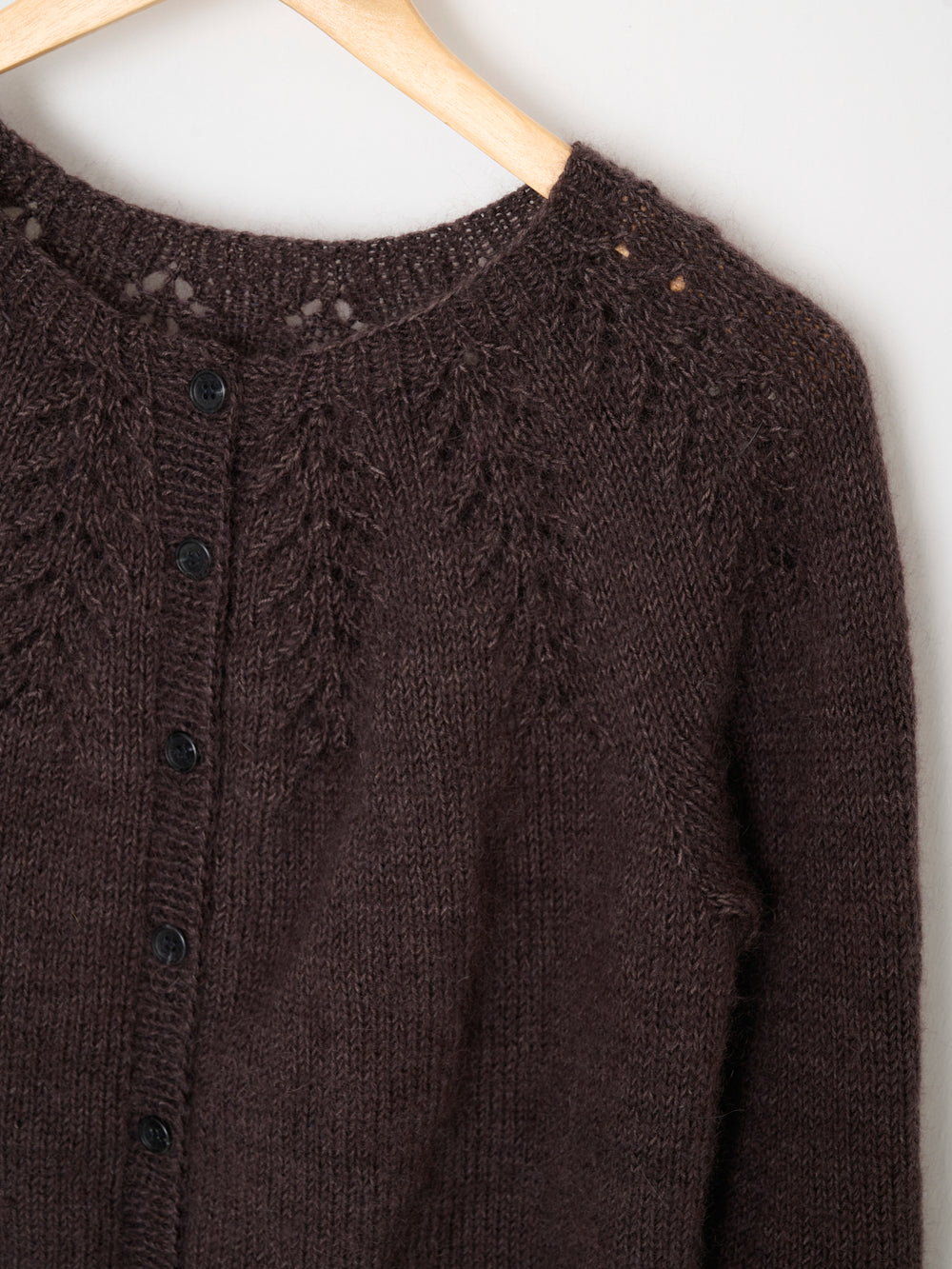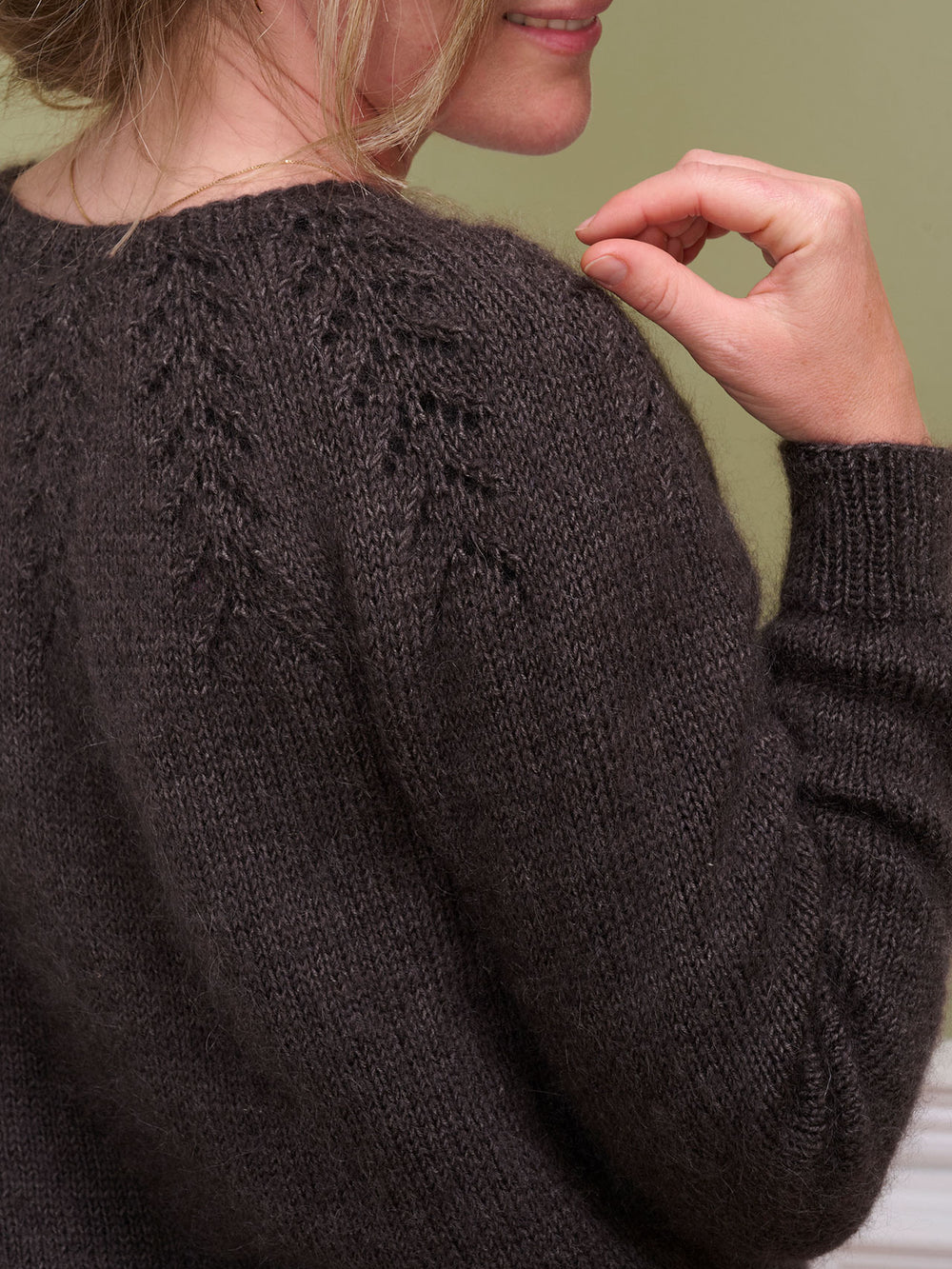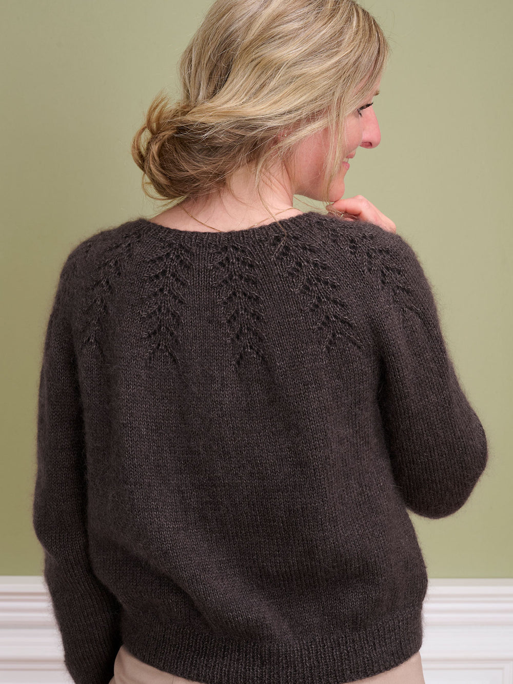 Der Cardigan wird von oben nach unten im bekannten IO-Look gestrickt. Ein kuscheliger, luxuriöser Cardigan aus Mayflower Amadora und Super Kid Silk.