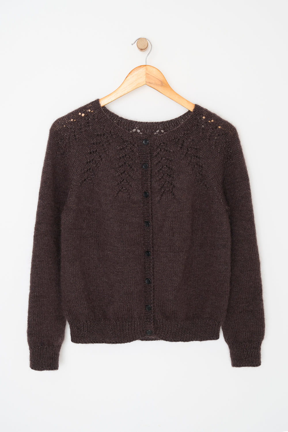 Der Cardigan wird von oben nach unten im bekannten IO-Look gestrickt. Ein kuscheliger, luxuriöser Cardigan aus Mayflower Amadora und Super Kid Silk.