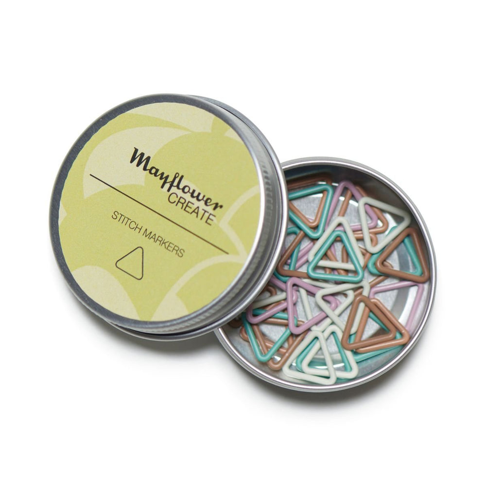 Die dreieckigen Maschenmarkierer von Mayflower Create sind aus Metall hergestellt und sehr leicht. Die Maschenmarkierer kommen in verschiedenen Farben in einer praktischen Schachtel mit 42 Stück, die es einfach macht, sie unterwegs mitzunehmen. Maschenmarkierer sind ein unverzichtbares Hilfsmittel sowohl für das Stricken als auch für das Häkeln, z.B. wenn Sie einen Pullover stricken. Mit Maschenmarkierern können Sie Runden, Stellen für Zunahmen oder Abnahmen usw. markieren.