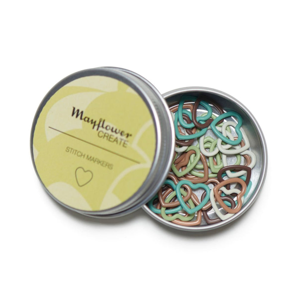 Die herzförmigen Maschenmarkierer von Mayflower Create sind aus Metall gefertigt und sehr leicht. Die Maschenmarkierer kommen in verschiedenen Farben in einer praktischen Box mit 42 Stück, die es einfach macht, sie unterwegs mitzunehmen. Maschenmarkierer sind ein unverzichtbares Hilfsmittel sowohl beim Stricken als auch beim Häkeln, zum Beispiel wenn du einen Pullover stricken möchtest. Mit Maschenmarkierern kannst du Runden, Stellen für Zunahmen oder Abnahmen usw. markieren.