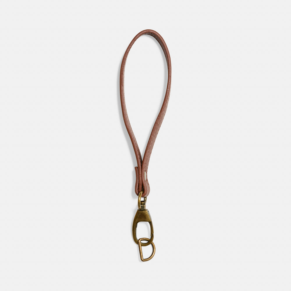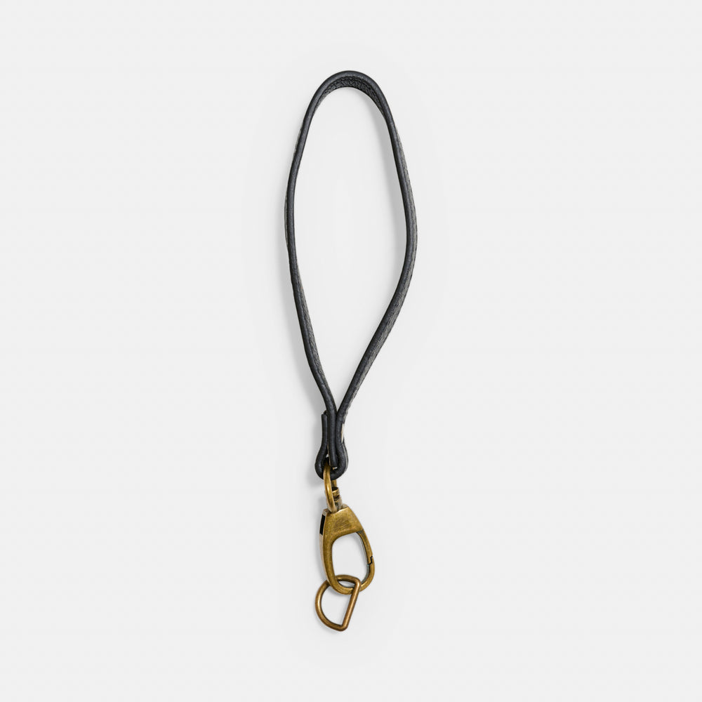 Eine handgefertigte Tasche für eine Clutch aus echtem Leder. Die Stroppe ist etwa 16 cm lang und wird mit einer bronzefarbenen Karabinerhaken an einer D-Ring an der Clutch befestigt. Die Taskestroppe ist in Schwarz oder Braun erhältlich.