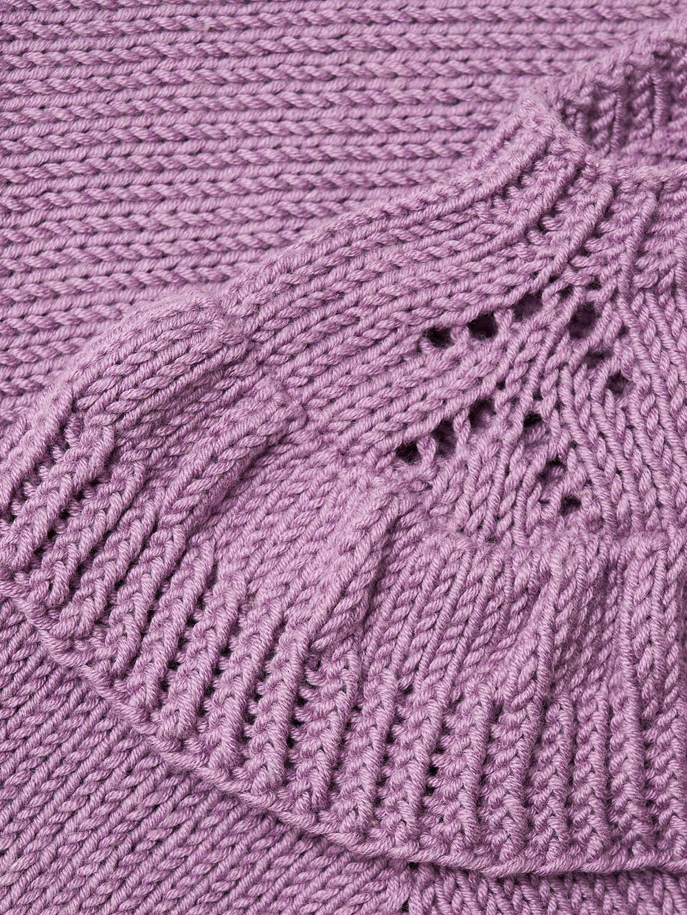 Gestrickt mit Mayflower Alliance, einer weichen Baumwollmischung mit glänzender Struktur, ist die Bluse angenehm zu tragen und ideal für das ganze Jahr – weder zu warm noch zu kühl.
