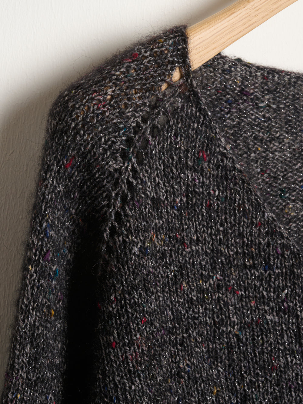 Nina -Pullover ist in Casablanca Lux gestrickt, einer schönen Garnmischung mit Alpaka, Wolle und Baumwolle. Das Garn wird auch durch einen diskreten Glimmerdraht ergänzt, der zusammen mit dem gebürsteten, abholten Look, den Casablanca Lux hat, einen verrückten netten Effekt verleiht.