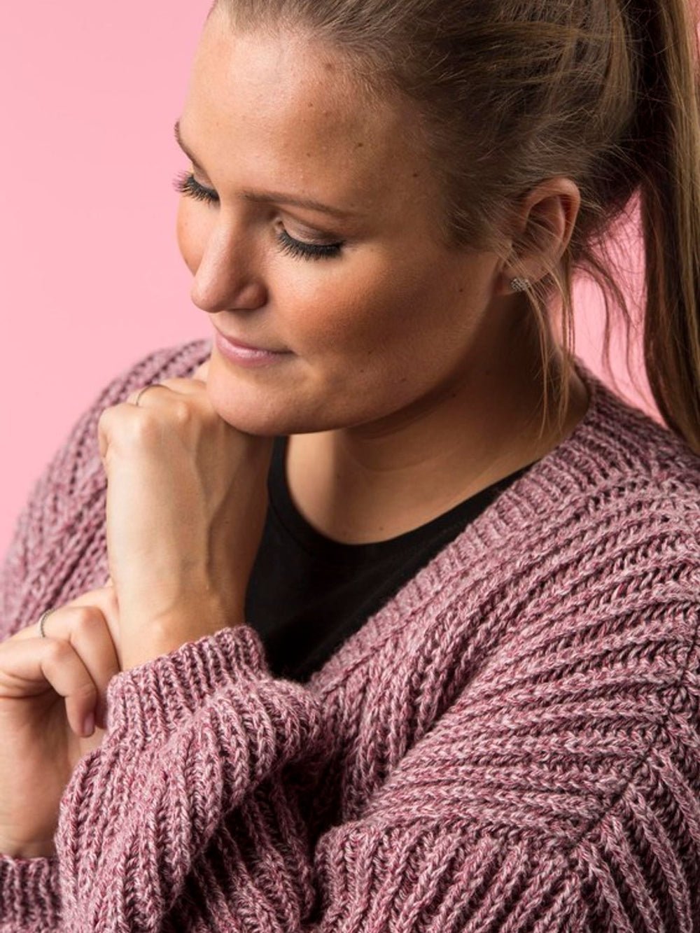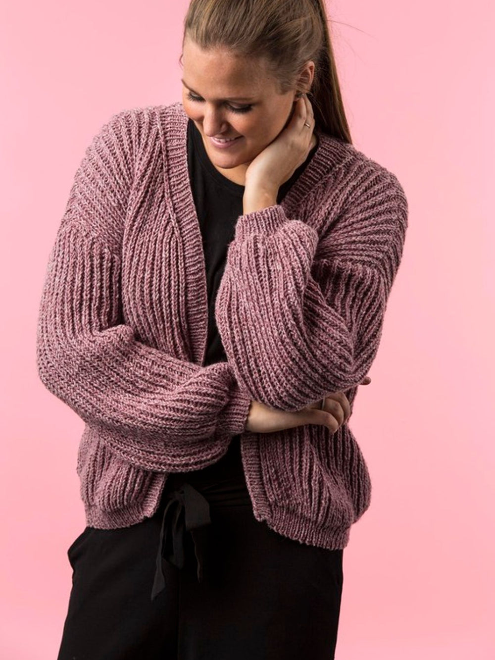 Das Design ist für leicht geübt, da Sie Patentstrick- und Raglan -Ärmel herstellen müssen. Darüber hinaus ist es auch ein großer Vorteil, wenn Sie zuvor versucht haben, Strickjacken zu stricken, oder dass Sie alternativ Erfahrung im Strickpullover haben.