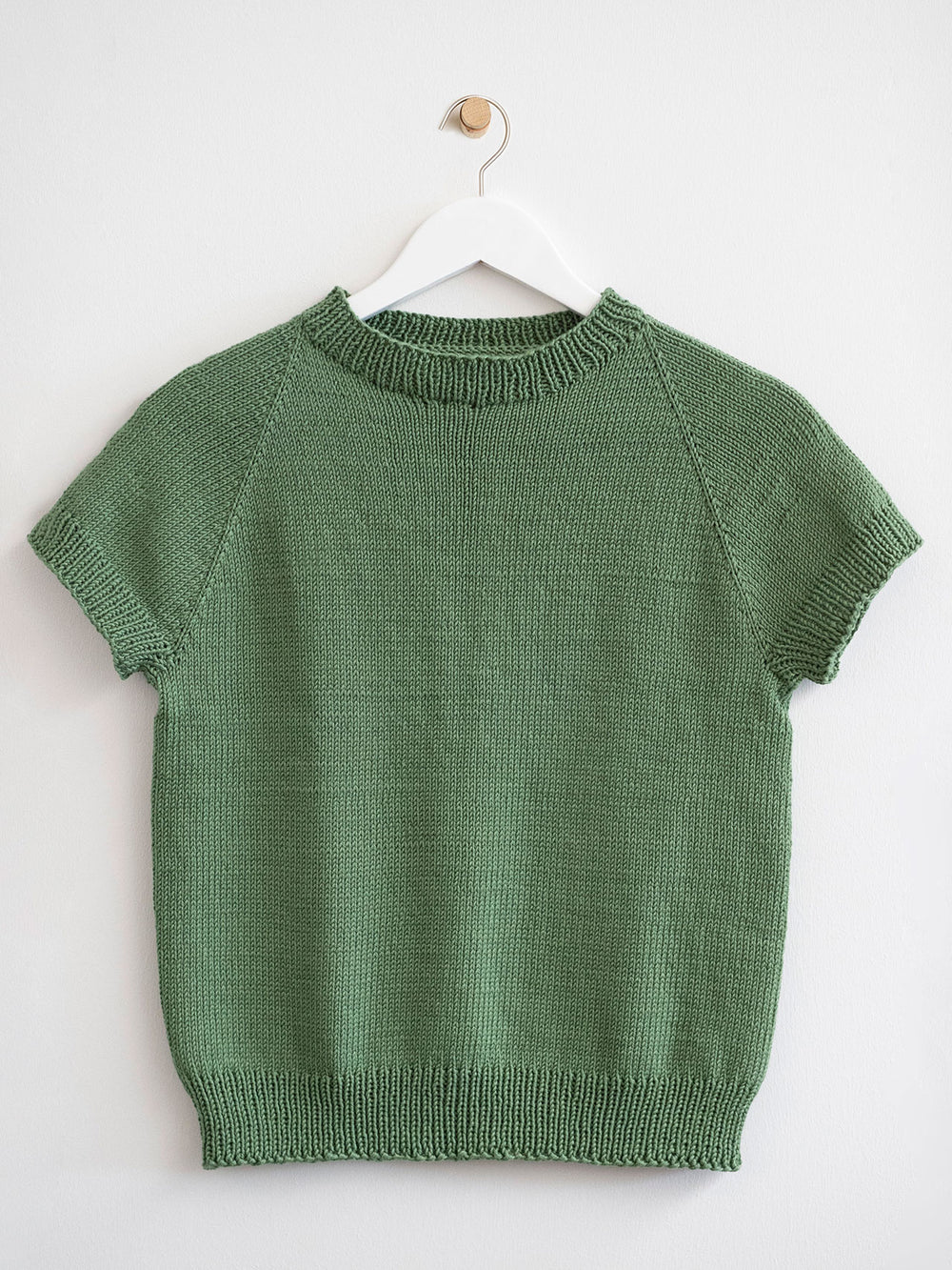 Penelope Tee ist eine klassische, schlichte Top-down-Bluse in glatt rechts mit kurzen Ärmeln, schönen Raglan-Zunahmen und feinen Rändern im Rippenmuster. Sie kann das ganze Jahr über getragen werden – im Sommer mit nackten Armen oder im Winter unter einer Strickjacke oder einem Pullover. Das schlichte Design von oben nach unten macht diese Anleitung außerdem besonders anfängerfreundlich.