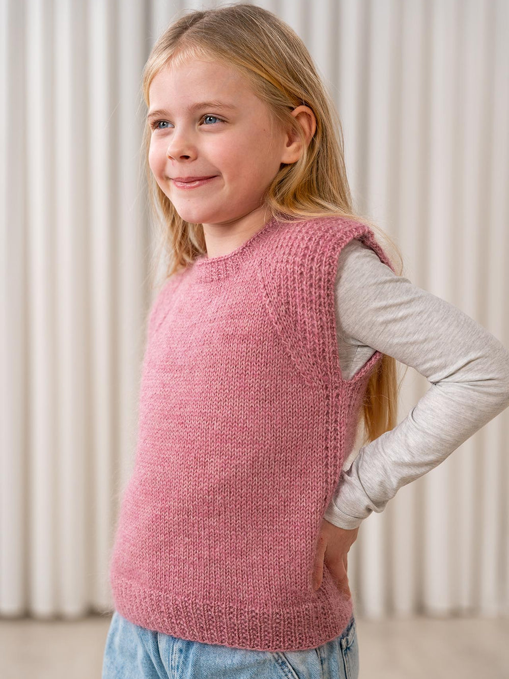 Die Weste ist in den Größen 2-12 Jahre erhältlich und muss von Hand mit Wollwaschmittel gewaschen werden.