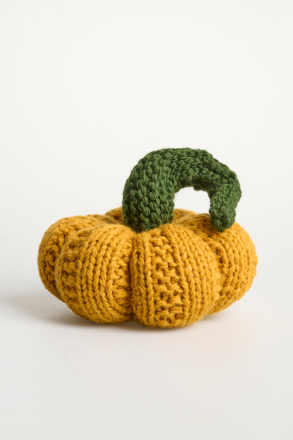 Feine, gestrickte Kürbisse, die sich wunderbar zur Dekoration in der Herbstsaison und zu Halloween eignen. Jeder Kürbis wird von unten nach oben gestrickt und anschließend mit einem Stiel zusammengesetzt.