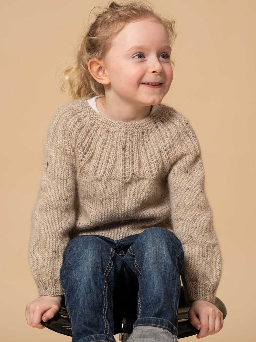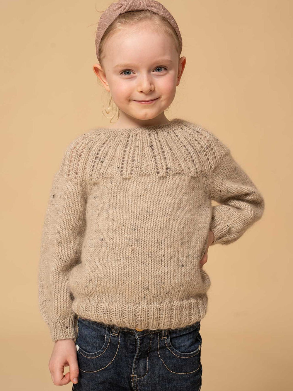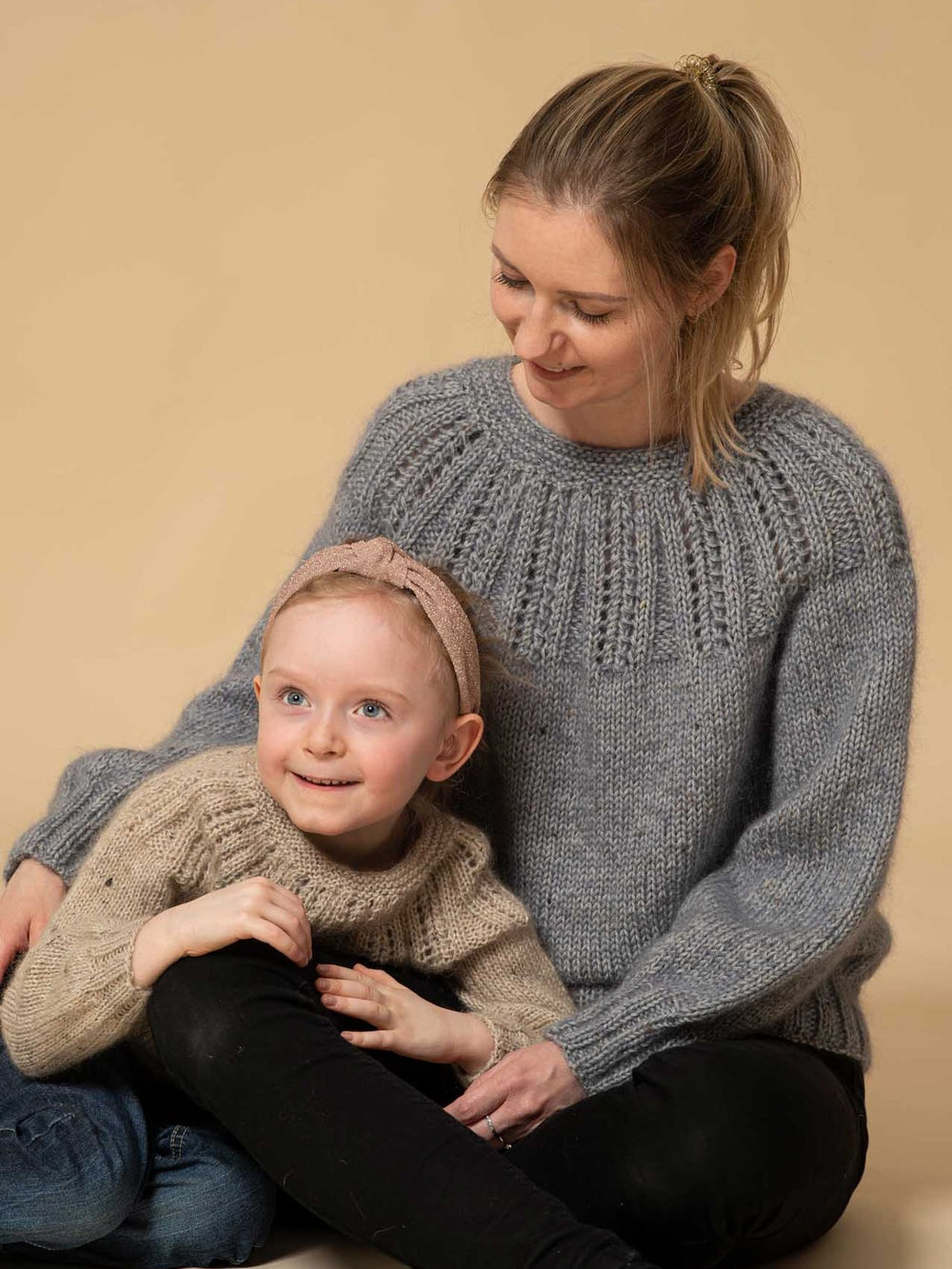 Der Viola-Pullover ist auch für Erwachsene erhältlich: Stricke ihn aus Easy Care Classic Tweed und Super Kid Silk. Hier gehts zur Anleitung.