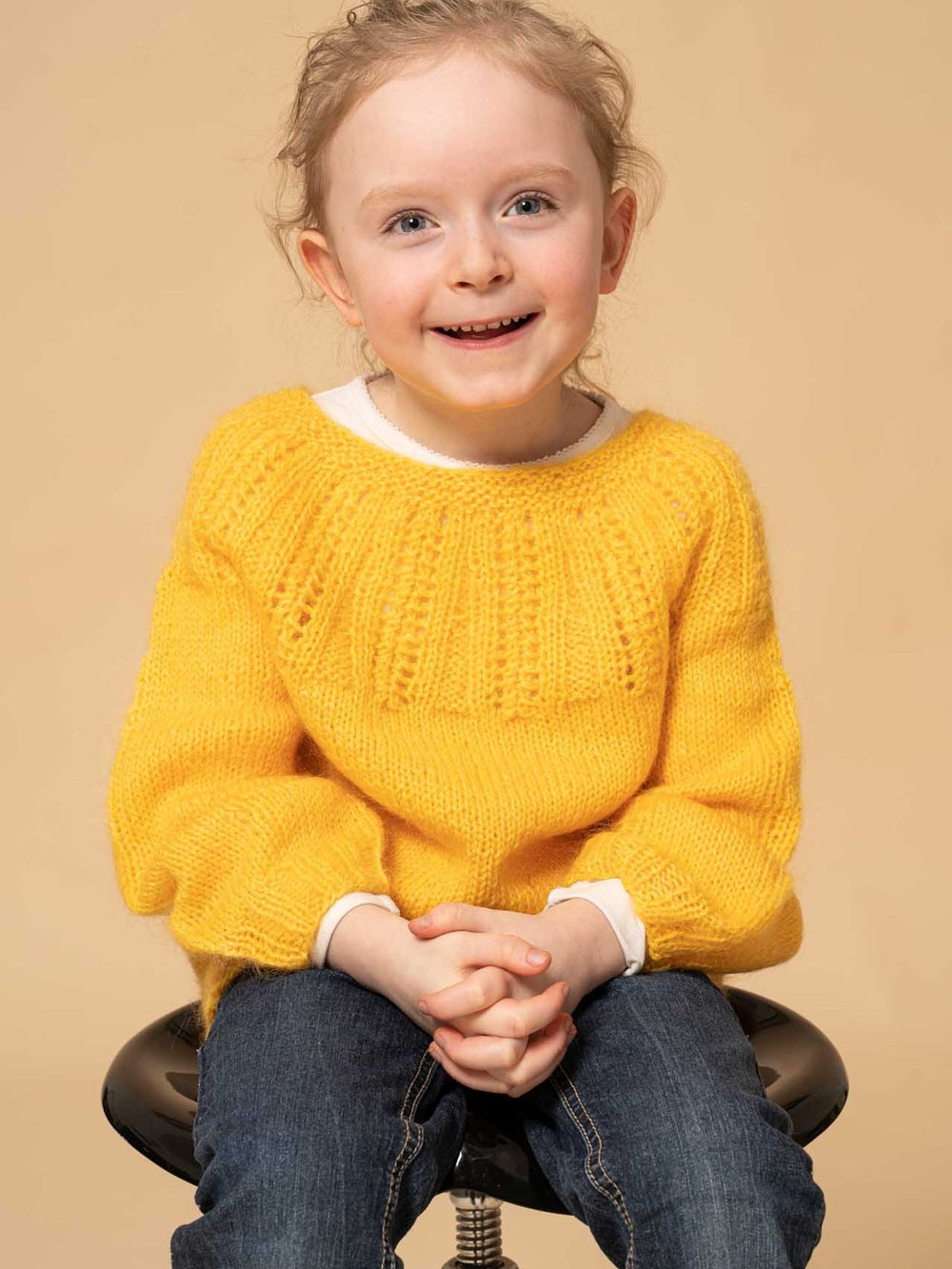 Der Viola-Pullover Junior ist eine Mini-Ausgabe des beliebten Viola-Pullovers, sodass nun passende Pullover für Mutter und Tochter gestrickt werden können. Der Pullover zeichnet sich durch sein schönes Lochmuster auf der Passe aus. Trotzdem behält er ein schlichtes Erscheinungsbild, da der Rest des Pullovers glatt gestrickt ist und abschließend mit einem klassischen Doppelrippenbündchen versehen wird.
