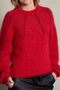 Der Pullover wird von oben nach unten gestrickt, wobei die Zunahmen in einem regelmäßigen Lochmuster erfolgen, das die Illusion einer blütenförmigen Sternstruktur erzeugt. Die Blume wird zusätzlich durch eine schöne Kante mit Zopfmustern betont, die das Passe vom restlichen Pullover abgrenzt. Für zusätzlichen Kontrast wird das Passe links gestrickt, während der Rest des Pullovers glatt rechts gearbeitet wird.