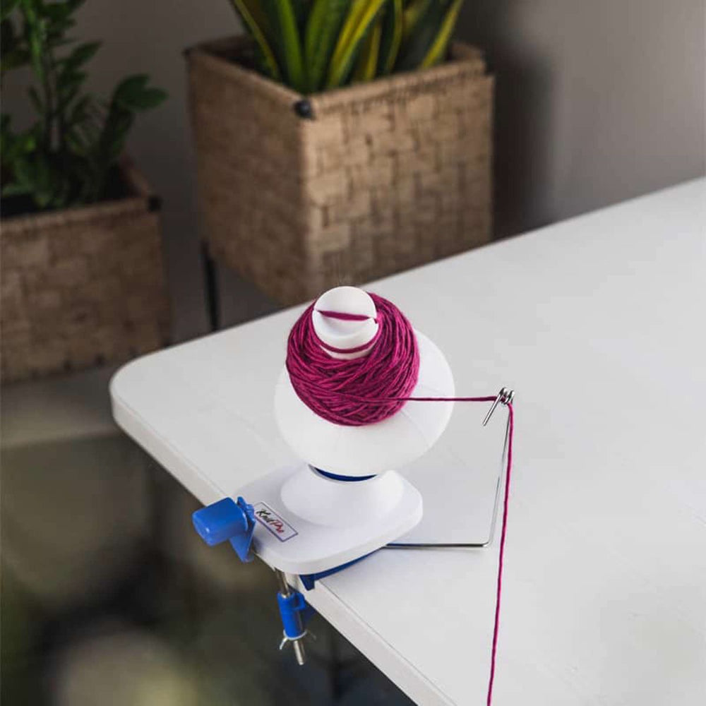 Der Kreuzwickler von KnitPro ist besonders praktisch, wenn du Garn in Strängen oder Haspeln hast, das zu einem Knäuel gewickelt werden soll.