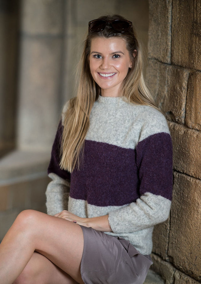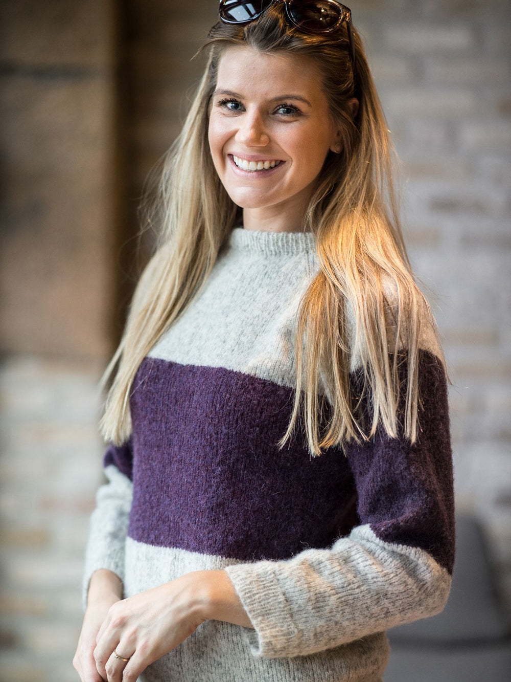 Hinweis: Der Pullover wurde ursprünglich mit Mayflower Sky Light gestrickt, das jedoch nicht mehr erhältlich ist. Als Alternative empfehlen wir New Sky Light.